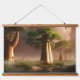 Beautiful and surreal fantasy art wood topped tapestry features "Madagascar Baobab Forest" with huge trees amid a morning mist