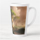 Beautiful and surreal fantasy art latte mug features "Madagascar Baobab Forest"  with huge trees amid a morning mist