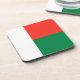 A design based on the flag of Madagascar covers the front of this square coaster. Most flags have a 3:2 or 2:1 aspect ratio but here have been intelligently reshaped by FlagAndMap to fit the product while preserving the integrity of the original design. These coasters are an ideal way to add a little Malagasy flair to your home.com/madagascar.