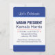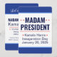 Two-sided invitation. Madam President Kamala Harris. Inauguration Day 2025. January 20, 2025. That's "Madam President" to you. If you're having problems saying Kamala Harris's first name (it's pronounced "Comma-la"), call her "Madam President" or "Ms. President." Front side is an announcement style, back side has the event details. Design description: Both sides have a large white central design area with a wide medium blue border at the top and bottom, and a light blue line separating the blue and white areas. Most text is template text. Side one design description: Side one is an announcement style. The blue borders at the top and bottom are blank, and in the white area in the middle are the words, "Madam President" in very large all caps bold dark blue sans serif font, over two lines. The first line has two red stars on each side of the word, "Madam." Separating that top part from the rest of the text is a thin red line. Below the red line are three lines of text in dark blue sans serif font. The first line reads, "Kamala Harris," with a single tilted red star on either side, and the next two lines are template text for Inauguration Day and Inauguration Date. Side two has more details about the event. It also has wider top and bottom borders. The top border reads, "Let's Celebrate" in white script font. The bottom border is blank. In the white design box are 7 lines of text. Line one reads, "Madam President" in dark blue all caps bold sans serif font. Below that, the "Kamala Harris" template from side one, sized so that is as long as the "Madam President" above. Below that is a thin red line like the one on side 1. Below the red line, three lines of text in dark blue sans serif font. The first line is a template for the time of the event. Lines two and three are the templates for Inauguration Day and Inauguration Date that are carried over from side one. Below those lines is a little bit of extra space, and then two template lines for the address of the vent and the RSVP/website information, all in the same dark blue sans serif font, but smaller. All text is template text, and all the fonts and colours can be customised.