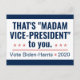 That's "Madam Vice-President" to you. If you're having problems saying Kamala Harris's first name (it's pronounced "Comma-la"), vote Blue and we can all call her "Madam Vice President" or "Ms. Vice-President." Design description: The design area has a white background and a dark blue border on the top and bottom. All letter text is in a sans serif font in the same dark colour as the border. The first line of text reads, "That's 'Madam." The second line of text reads, "Vice-President." The third line of text has three red stars on the left and right of the words, "to you." Below that is a thin red line. The fourth and final line, at the bottom of the design area, reads, "Vote Biden-Harris 2020," with a single, angled red star between "Harris" and "2020." Each line of text is a template. Customise with your preferred colours.