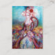 Elegant ,colourful ,classy and whimsical design in bright ,fuchsia, teal,turquase, white colours .Beautiful sophisticated whitish-blonde woman,blue,pink sparkling gold fabrics of a baroque costume with feathers and a red rose. Original watercolor and acrylic painting with golden foil and iridescent colours on canvas.This cool and artistic card is perfect for fashion designers,hair stylists, costumers,clothing designers, boutique owners,make up artists,cosmeticians, personal shoppers, wardrobe consultants, and other creative professions.