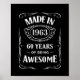 For 60th birthday in 2023 - Made in 1963 60 years of being awesome in mixed sans and serif font with vintage scroll and frame embellishments. For 60th milestone birthday.