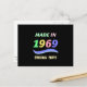 Made in 1969, colourful text design, custom postcard.