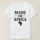 The image shows a dynamic typographical illustration with the inscription "Made in Africa" in colorful handwritten letters. The geometric patterns in orange, green and black evoke African fabrics and reflect the pride, creativity and identity of the African continent