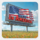 A large billboard featuring a wave-like American flag and the prominent words "Made in America" stands in a field of flowers under a bright blue sky