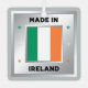 A square design featuring the Irish tricolour flag. There are decorative stars on either side of the flag, and are coloured in the shades of the tricolour flag. The design elements are situated on a faux silver background.