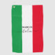 Italy golf towel with Italian flag colours red, white, and green. Fancy, elegant font text "Made in Italia". Customise the text with your own message for a more personalised gift.