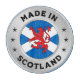 A design which features a faux silver ring, which has been designed to look like the outer and inner have been chamfered. In the center of the ring, is the Scottish flag and the red lion rampant. Around the ring is the text "Made In Scotland" along with 6 decorative stars.