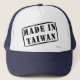 Made In Taiwan! Are you from Taiwan? Do you have a friend or family member who loves Taiwan? If so, this "Made In..." hat is exactly the gift that you're looking for! The design features a weathered "Made in Taiwan" in black stencil-like lettering surrounded by a black rounded rectangle.