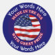 This round sticker is decorated with a US Flag and the words MADE IN THE USA WITH GREAT PRIDE AND can be customised with a choice of words above and below that allows you to personalise it WITH A COMPANY NAME or any way you choose.