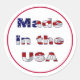 Round sticker with “Made in the USA” in bold American flag letters. Red border. See matching custom-cut vinyl sticker, confetti, favour bag, favour tag, label and wrapping paper. See the entire Patriotic 40s Stickers collection in the INVITES | Stickers & Labels section.