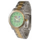 Granny apple green background can be changed to anything you like. Watch shows with bright green numbers for easy telling of time on this lady's watch. Choose from a variety of styles, too. Includes kids and men as well.