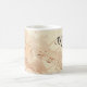 Coffee, tea mug depicts an abstract watercolor background with old music sheets. It features an inspirational Christian quote, "Made to Worship."
