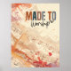 Poster depicts an abstract watercolor background with old music sheets. It features an inspirational Christian quote, "Made to Worship."