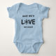 This baby was made with love and science. We have no need for storks! The O in the word LOVE is replaced by an atom symbol.