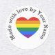 "Made with Love by [Insert Your Name Here]" customisable text in modern font with gay pride flag heart illustration
