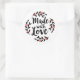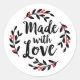 A personalised "made with love" 3 inch sticker on a white coloured background. Features a pretty berry wreath and the words "made with love" in an elegant script font. A pretty finishing touch for all of your handmade gifts. Designed for you by Blackberry Boulevard.