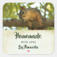 Homemade with love stickers with an adorable image of a brown squirrel standing on a tree branch looking at you with an inquisitive face.