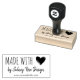 Made with love rubber stamp with a doodled black heart. Customize with your name in a charming brush script and website.