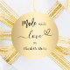 A faux gold looking background, black text. Personalise and add your name. With the text: Made with love, by + a small heart.