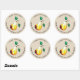 The sticker is made on wonderful paper and had no problem sticking to the bag that I purchased to put it on. I wanted to find a design that would be cute for the bride and groom and this one fit the bill as it has cute "bees" buzzing around and the wedding was taking place in a town called "Bee Cave". The packaging was great and protected the stickers. The website is easy to navigate and there are so many color choices. I had no problem finding a color that the bride was using on everything else selected. The design was adorable and there were many to choose from. You can make the figure as larger or smaller and you can place the photo and writting whereever you want to in the sticker. The printing is fabulous..better than expected.