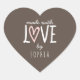 Perfect sticker label for makers, businesses, or individuals making handmade handcrafted goods & products. Design features "Made With Love By" displayed in a stylish handwritten style text pairing. Personalise with your name. Note: colours can be changed in suit your design preference and brand image. Artwork by Moodthology.