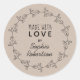 Made With Love Personalised Floral Wreath Kraft Product Label Round Sticker... A rustic kraft paper effect round sticker for your handmade gifts, home-baked foods, or homemade products for sale. A cute line art floral wreath borders the text which reads "Made with Love by" followed by your name in trendy script typography. You can easily change the name to your own on the personalisation template. PLEASE NOTE: The kraft paper effect has been created with ink magic... the printing is not on actual kraft paper.