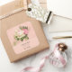 Made with love personalised stickers with a floral rose bouquet with white and pink flowers. Background is pink with a floral pattern. Pretty and elegant design.