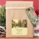 Made with love personalised stickers with a beautiful nature photograph. An isolated winter path with tall snow covered pine trees.