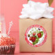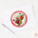 Personalised homemade jam round stickers for jars of homemade strawberry jam and other preserve products. Featuring a red and pink heart border with wild strawberries and flowers with butterflies. The easy to use template allows your to personalise the text that currently reads "HOMEMADE STRAWBERRY JAM", the date the jam was made, who it was made by and the test "MADE WITH LOVE".