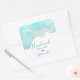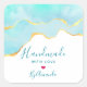 Made with love personalised stickers with a serene summery design. Turquoise / aqua green watercolor image with a wavy faux gold border. Elegant and lovely.