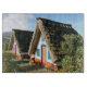 This is a photo of Madeira Island, Portugal, showing the typical houses. Madeira captivates visitors with its enchanting beauty amidst the Atlantic Ocean. This paradise boasts stunning landscapes, vibrant flora, and a rich cultural tapestry. One of its most iconic attractions is Santana's Typical Houses, a collection of charming dwellings that showcase the island's heritage.