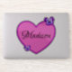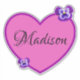 Pictured in a pink and purple heart is a Madison name logo with two Pansies