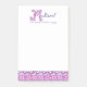 Madison personalised M name meaning or message post it notes. Initial M monogram name and meaning in purple, pink and white. Ideal for a personalised gift for a girl who has a name that starts with the letter M. This example reads Madison A tower of strength, warmhearted an amazing gift or you can customise the text with your own name or message if required. Makes a unique office celebration gift. © Decorative typographic letter M flowers with hearts hand drawn and pattern uniquely created by Sarah Trett for www.mylittleeden.com