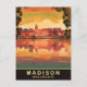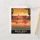 Madison postcard.. City waterfront skyline and reflections on the water. Illustrated travel postcard in vibrant colours.