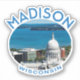 Madison, Wisconsin photo of the capitol, downtown buildings, and the lake with the name at top and Wisconsin below.