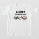The t-shirt feels and looks great quality, a good thick cotton. It will be a little big for my son, but that means he will be able to wear it and not out grow it too soon. The print was as described on the order when personalised. True size, shape and colour T-shirt- thanks.
