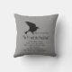 This design features a prose: By Edgar Allan Poe with a Portrait of Poe By : Artist, Lisa Anne Ashley., The Custom Pillow is created in black ,Grey & white. On the back of the pillow is a quote by Poe with a raven. A great decorative Pillow For any Fan of Edgar Allan Poe.
