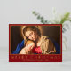 This real gold foil religious Christmas card features a beautiful painting of the Madonna and Child by artist Giovanni Battista Salvi. The design also includes the words "Merry Christmas" and your family name and year printed on one side, set against a red background. The other side provides room for a family photo and a brief message. It is perfect for Catholic or Christian families who want to add a spiritually meaningful touch to their Christmas card giving. This Catholic Christmas card was designed as part of my elegant Madonna and Child Christmas collection. Be sure to browse the collection for matching address labels, envelopes, stamps, stickers, Christmas decoration, gift ideas and more. To change fonts or colours or reposition text boxes in this template, please scroll past the text template boxes and click "Edit using design tool". If you need additional help, take advantage of Zazzle's free service at https://www.zazzle.com/live or contact me through Zazzle's messaging system. Also, if you do need something that you do not see in this collection, please let me know. I would be happy to design it for you! Please note, I create the designs, but all printing and shipping is done by Zazzle at its production facilities, so if there is any issue with your order, please contact their customer support at 1-888-892-9953 or https://www.zazzle.com/about/ask.