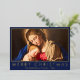 This real gold foil religious Christmas card features a beautiful painting of the Madonna and Child by artist Giovanni Battista Salvi. The design also includes the words "Merry Christmas" and your family name and year printed on one side, set against a mmidnight blue background. The other side provides room for a family photo and a brief message. It is perfect for Catholic or Christian families who want to add a spiritually meaningful touch to their Christmas card giving. This Catholic Christmas card was designed as part of my elegant Madonna and Child Christmas collection. Be sure to browse the collection for matching address labels, envelopes, stamps, stickers, Christmas decoration, gift ideas and more. To change fonts or colours or reposition text boxes in this template, please scroll past the text template boxes and click "Edit using design tool". If you need additional help, take advantage of Zazzle's free service at https://www.zazzle.com/live or contact me through Zazzle's messaging system. Also, if you do need something that you do not see in this collection, please let me know. I would be happy to design it for you! Please note, I create the designs, but all printing and shipping is done by Zazzle at its production facilities, so if there is any issue with your order, please contact their customer support at 1-888-892-9953 or https://www.zazzle.com/about/ask.