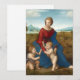 Madonna in the Meadow by Raphael is a masterful High Renaissance painting that depicts the Virgin Mary seated in a lush landscape, watching over the infant Christ and John the Baptist. Mary, dressed in a red gown with a blue mantle, exudes warmth and maternal grace as she gently holds Christ’s hand while he reaches towards John. The balanced composition, soft lighting, and harmonious colour palette reflect Raphael’s signature style, influenced by Leonardo da Vinci’s sfumato technique. The idyllic countryside in the background enhances the sense of peace and divine presence, making this artwork a timeless representation of love and faith.