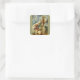Childlike Madonna surrounded by lilies with an angel in the background.