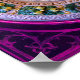 Elegant classic,vibrant Renaissance fine art ,masterpiece from Bottega della Robbia ( Florence - Italy ) in white,blue ,green,brown colours.An antique nativity scene,stable,animals,trees,winged cherubs in blue sky on a bright yellow,green decorative ornamental floral crown .