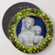 MADONNA WITH CHILD RENAISSANCE FLORAL CROWN 6 CM ROUND BADGE