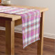 Table runner in a madras style pink plaid with with turqouise, tangerine and purple lines throughout. A colourful additional to your summer table decor. Additional sizes available.