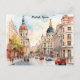 This is a elegant and beautiful Madrid Spain watercolor painting on a postcard featuring a view over of the spanish capital with its iconic architecture. This product makes an amazing souvenir and gift idea for every tourist.