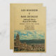 Vintage Madrid Wedding Invitations featuring a city view with mountains in the background. This cool mid-century retro design is the perfect way to gather guests to your Madrid Spain destination wedding.