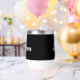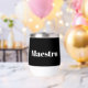 One side of this design features the word 'Maestro', while the other side can be personalised with a name. Simple white on black text creates a minimalist look. An ideal novelty gift for a conductor, performer or music teacher.