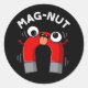 Mag-nut Funny Magnet Pun Dark BG Classic Round Sticker